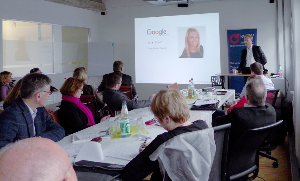 Google AdWords Professional Adrian leitet wie erwähnt unser Team für Suchmaschinenwerbung. Unsere Gäste hatten am Donnerstag die einmalige Gelegenheit, im kleinen Teilnehmerkreis von ihm alles Wichtige zum Potenzial von Google-Anzeigen für Mittelständler zu erfahren und ihre persönlichen Fragen loszuwerden.