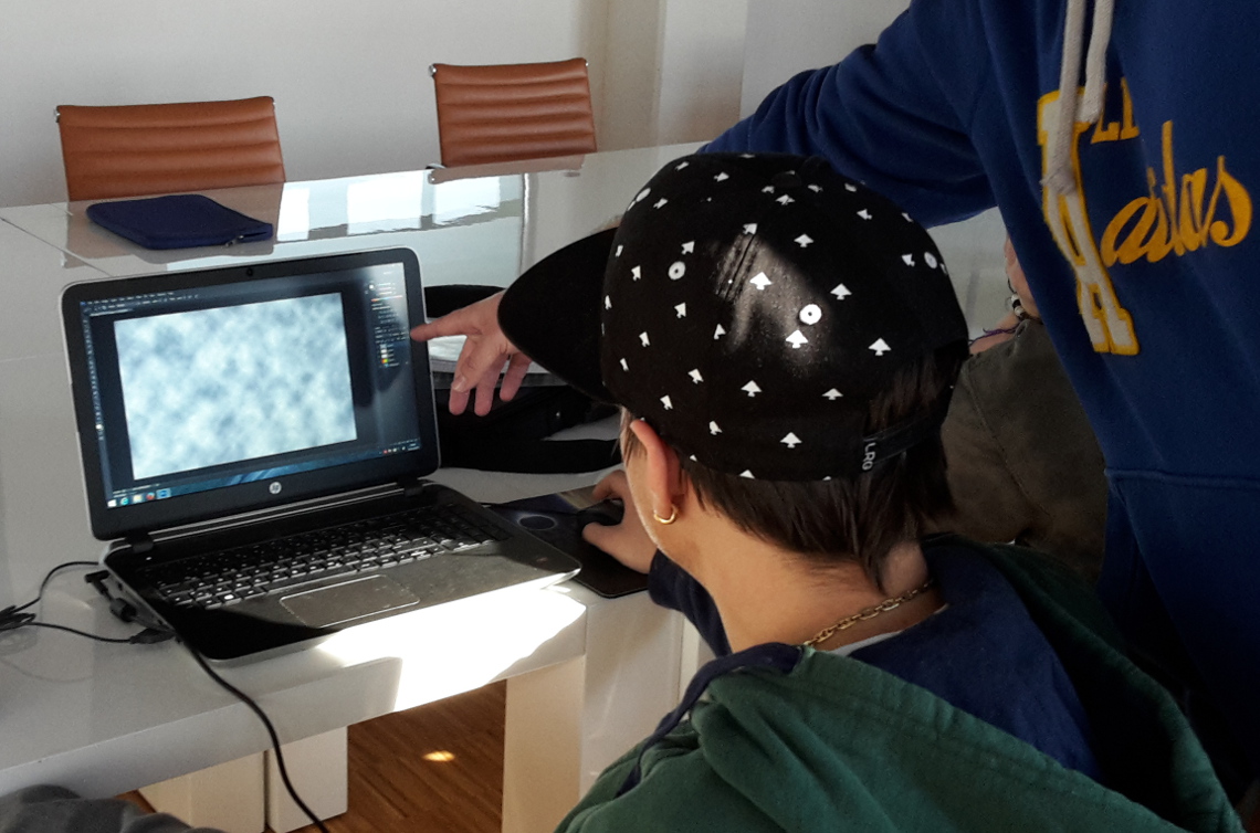 Die erste Runde startete am Donnerstag, 30. April, mit Saskia, Felix, Alexander und Kevin aus dem ersten und zweiten Lehrjahr. Felix hatte die Idee zur Arbeitsgruppe und übernahm den ersten Part einer geplanten Reihe zum Thema Photoshop. Inhaltlich ging es beim ersten Treffen schwerpunktmäßig darum, wichtige Basics und gebräuchliche Handkniffe zurück ins Gedächtnis zu rufen und anhand praktischer Beispiele wieder aufzufrischen.